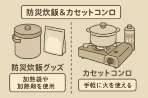 - カセットコンロや電池式炊飯器:停電でも温かい食事ができる