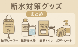 - 携帯浄水器や簡易シャワー:断水時の衛生を守る